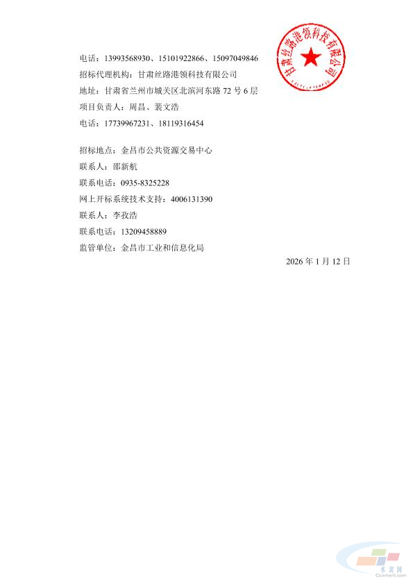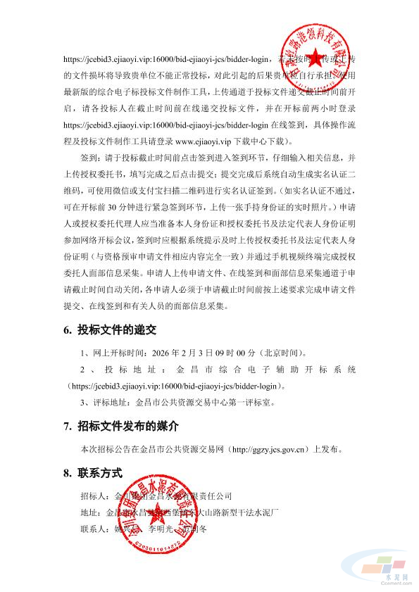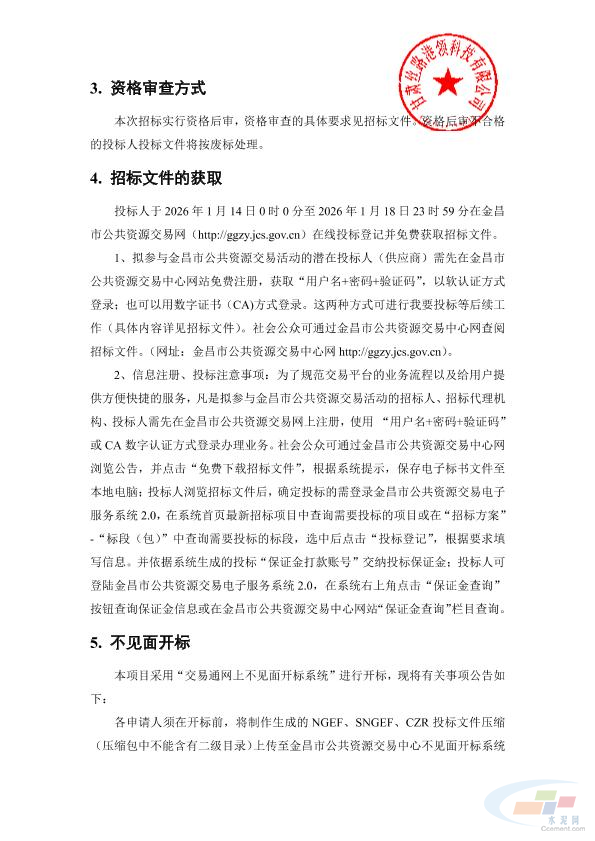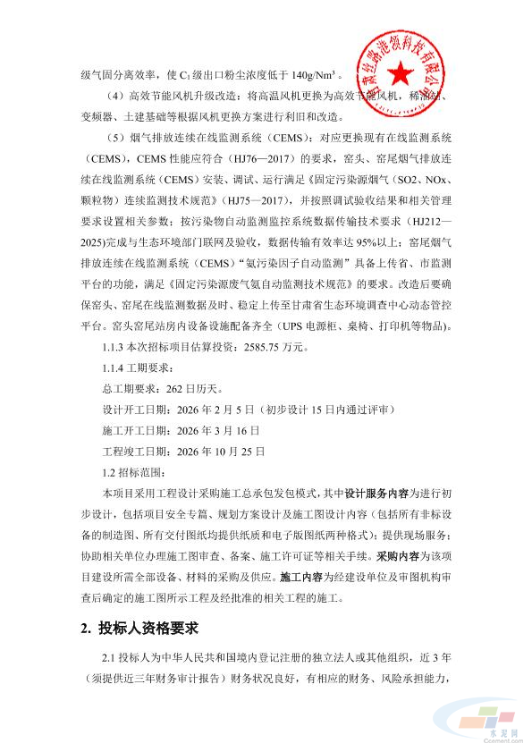 2026年1月13日,金泥公司水泥熟料生产线超低排放改造项目--新型干法水泥厂超低排放改造项目招标公告发布。