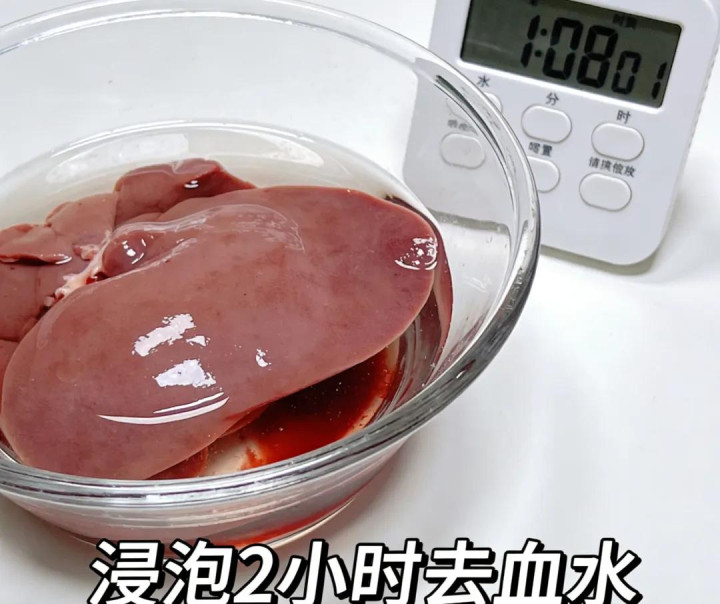 【1】准备新鲜猪肝500克,用清水浸泡2小时去血水,期间换水3-4次。