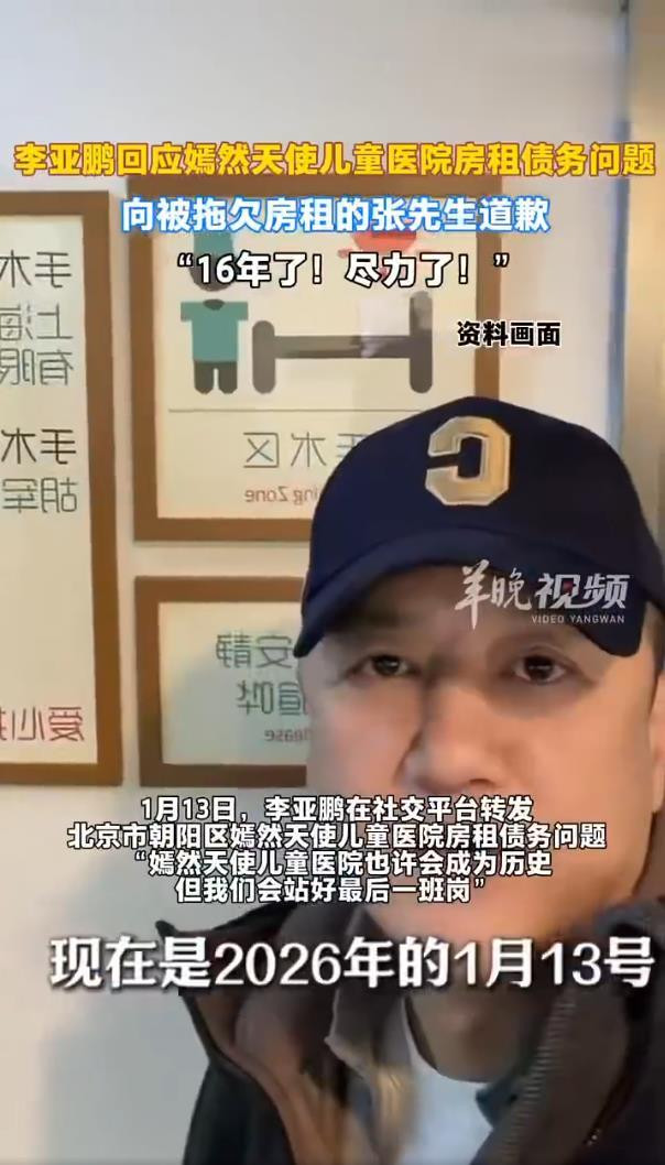 这场舆论风暴的起点,是1月14日晚李亚鹏发布的那条名为《最后的面对》的视频。视频里,他首次详细剖白了北京嫣然天使儿童医院因拖欠2600万租金而面临被迫迁址、甚至关停的艰难处境。没有卖惨,没有辩解,只有一五一十的交代和一声叹息。