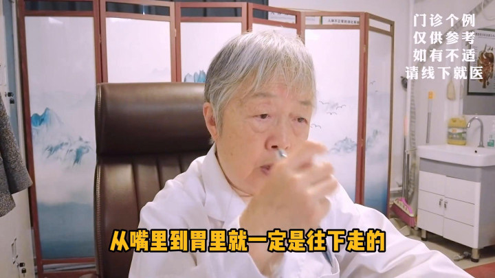 不是先别想着先吃药,最简单的办法能解决,不要先拿药去解决它,这是一直在强调的这些事情。反酸、打嗝、口苦都是一个往上来的东西,总体来说叫胃气上逆。应该吃的东西从嘴里到胃里就一定是往下走的,往肠子从肛门出去,绝对不应该从胃里再往上反。